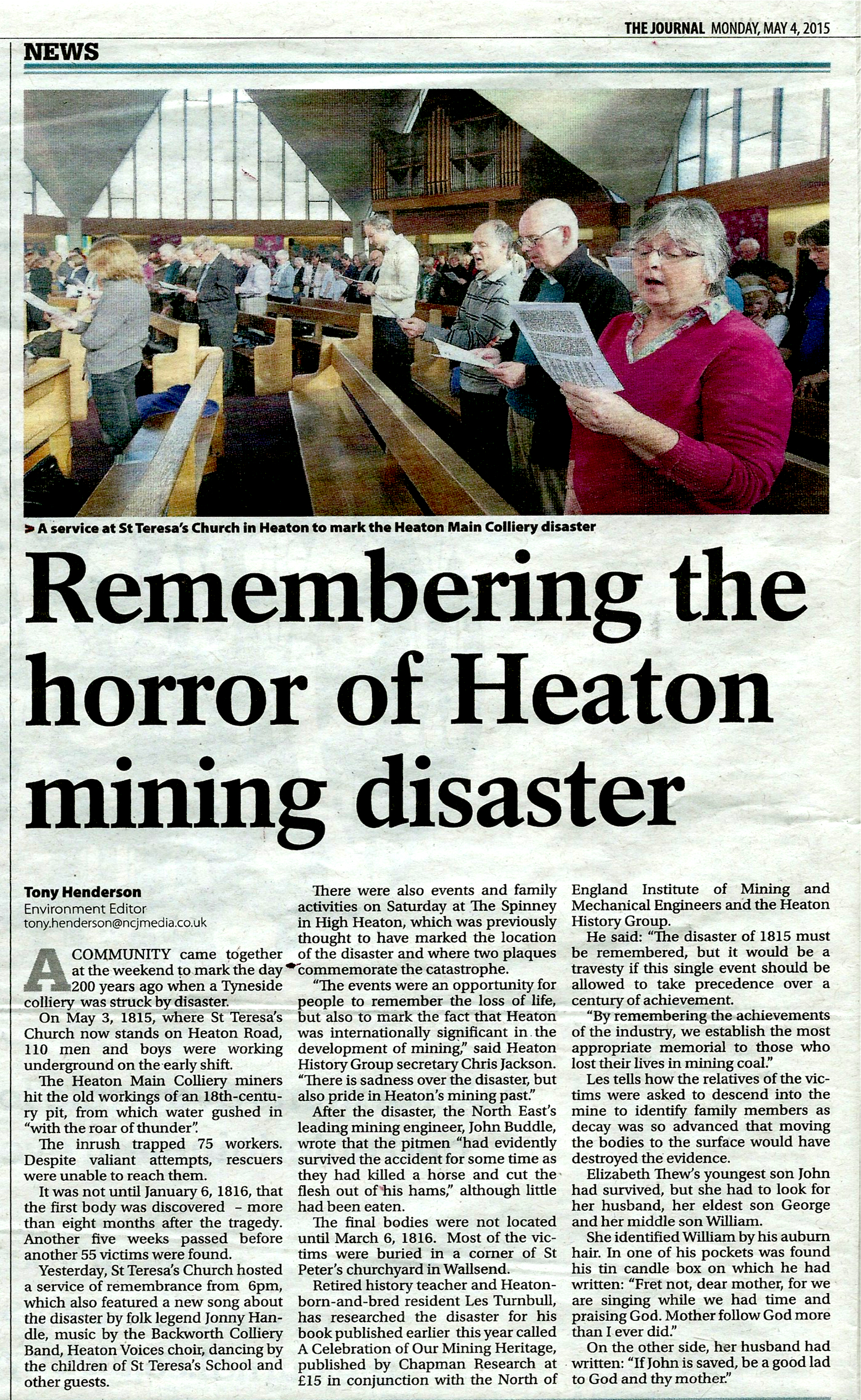 On May 3, 1815, where St Teresa’s Church now stands on Heaton Road, 110 men and boys were working underground on the early shift.